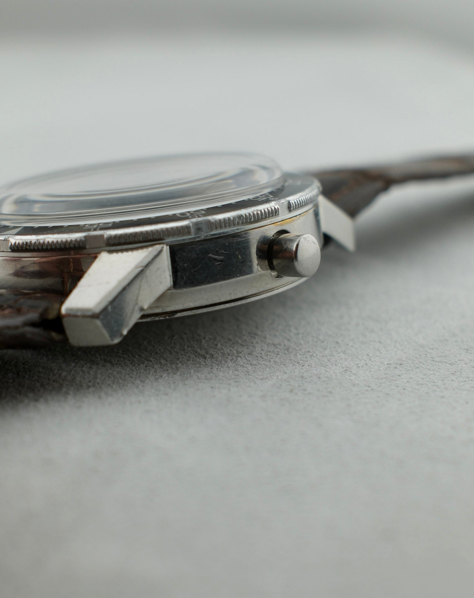 Heuer created the Seafarer for Abercrombie & Fitch as a specialized tool watch during the 1950s and 1960s, targeting the retailer’s adventurous, outdoors-focused clientele. This model uniquely merged a classic chronograph with a tide indicator, making it especially practical for sailors and coastal explorers by allowing them to track tidal movements alongside standard timing functions. This example is the rare First Execution 2446C, distinguished by its original silvered lumed hands—a hallmark of the earliest series. The "C" in its reference notes the use of its original Autavia stainless steel snap back compressor case. Offered here to a public market for the first time since it was sold new at Abercrombie & Fitch, this is a one-owner watch, adding significant provenance for collectors of vintage Heuer and purpose-built chronographs.