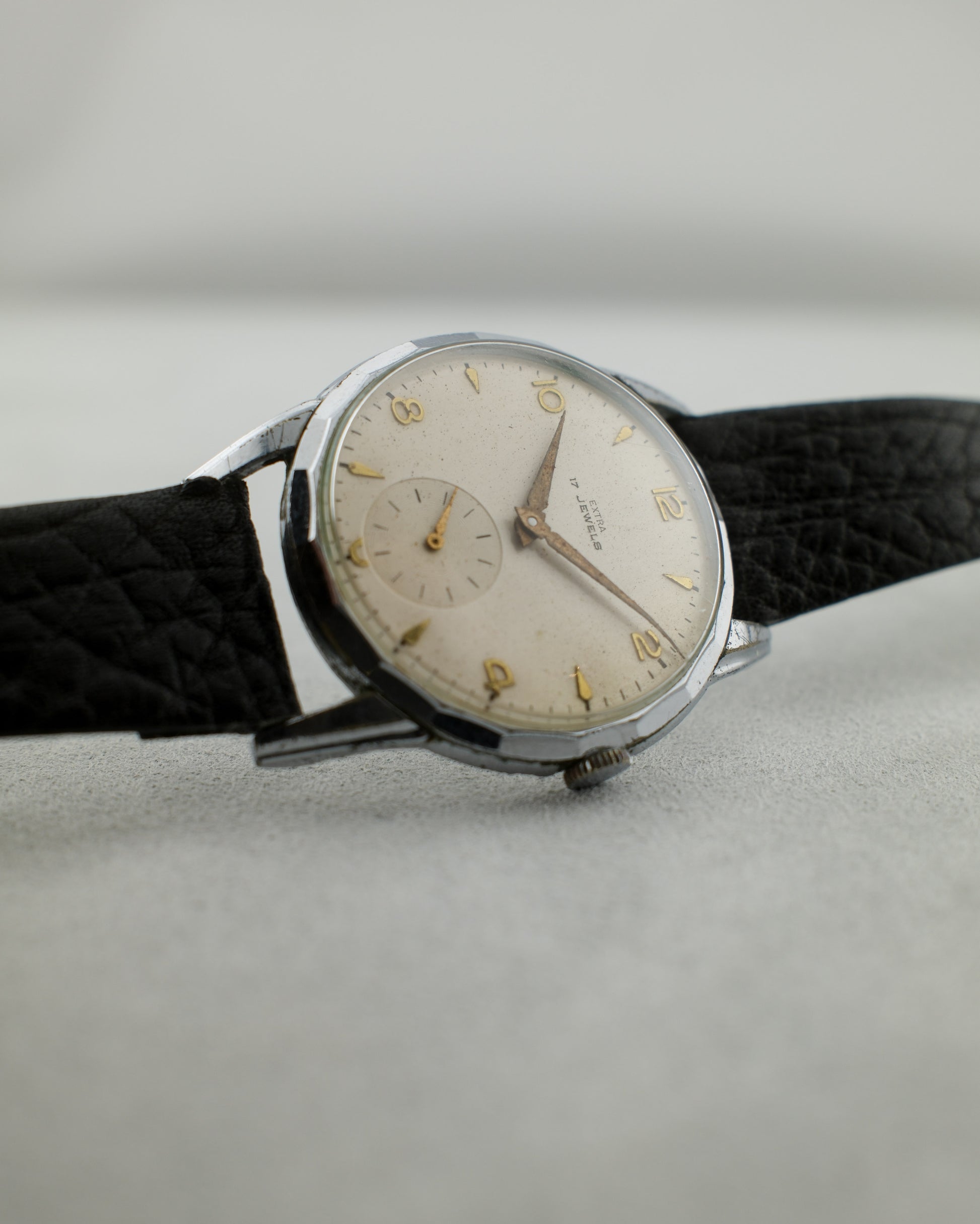 At the heart of this timepiece beats the manual-wind A. Schild (AS) 1130 caliber. The AS 1130 was a popular movement in the 1940s-1950's, known for its reliability and accuracy. While the dial states 17 jewels, the movement itself is noted to have 21 rubies. The movement in this Extra runs well at the time of listing, but has not been bench tested for precise accuracy.