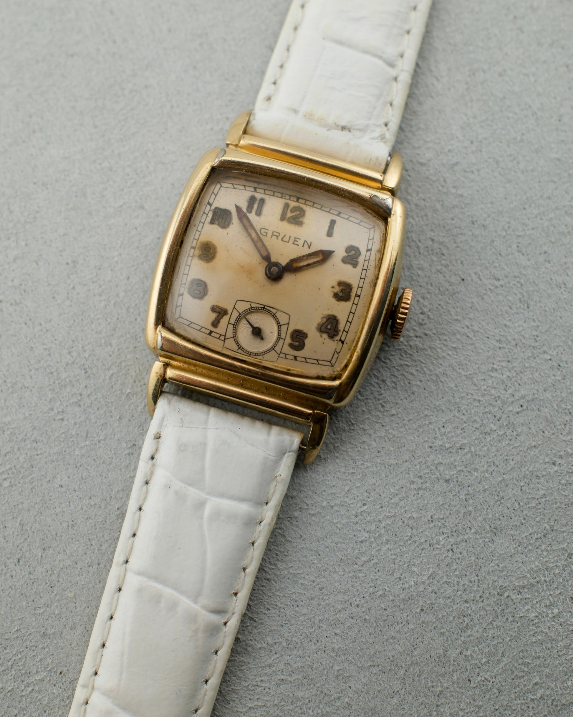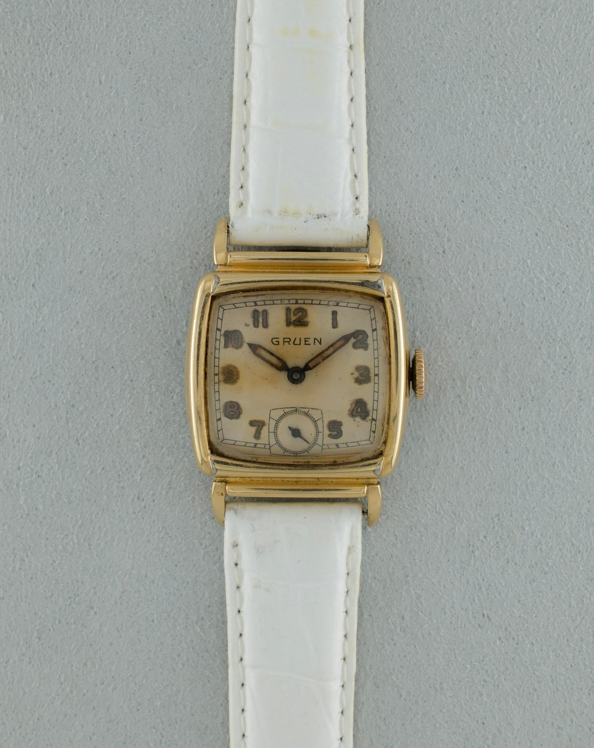 This Gruen timepiece, crafted in approx. the early 1940s, represents a fascinating chapter in Gruen's history. The production of this piece likely coincided with Gruen's efforts during World War II, when the company was able to continue producing watches due to its Swiss-made movements, while also contributing to the war effort by manufacturing gauges and instruments for the military.