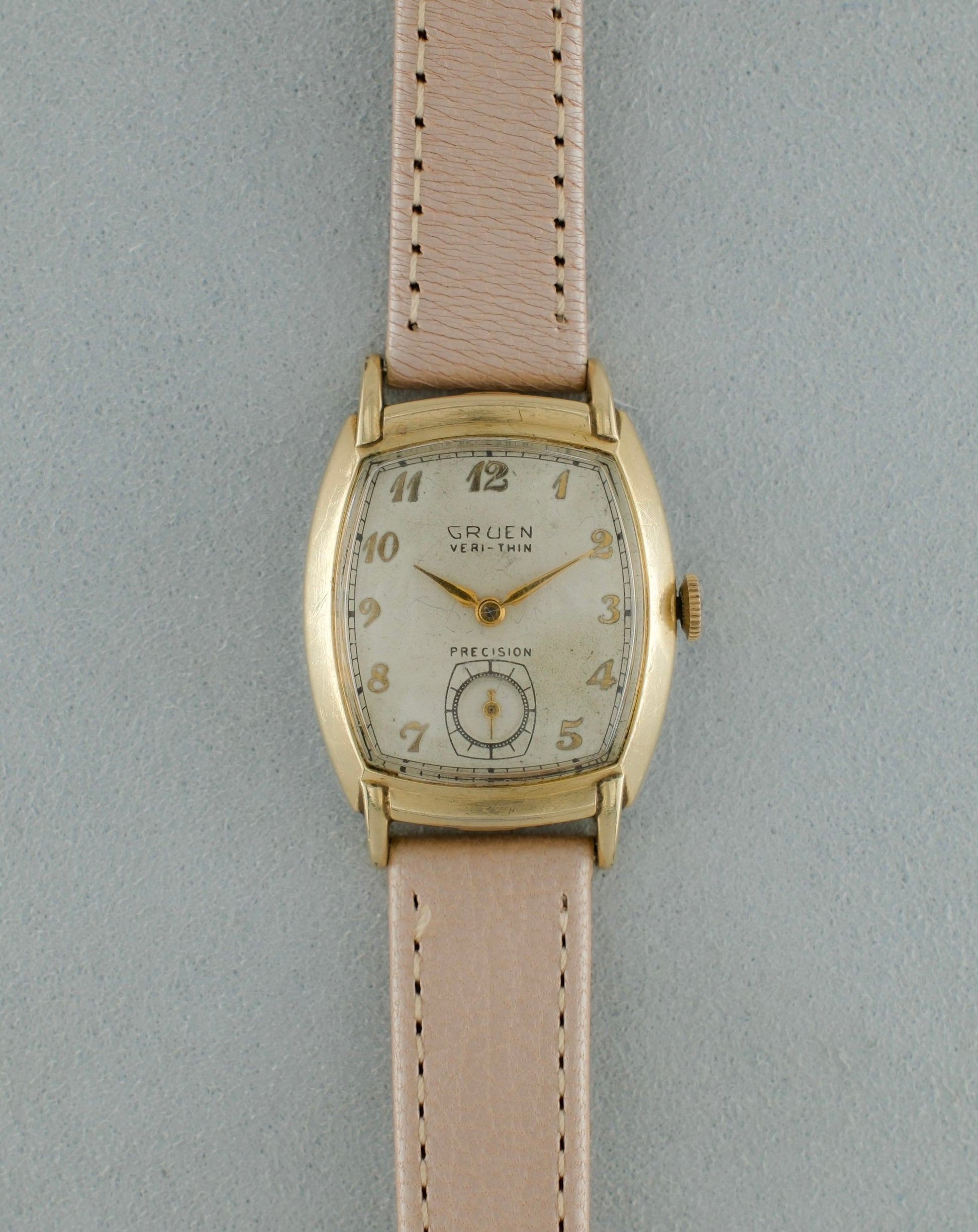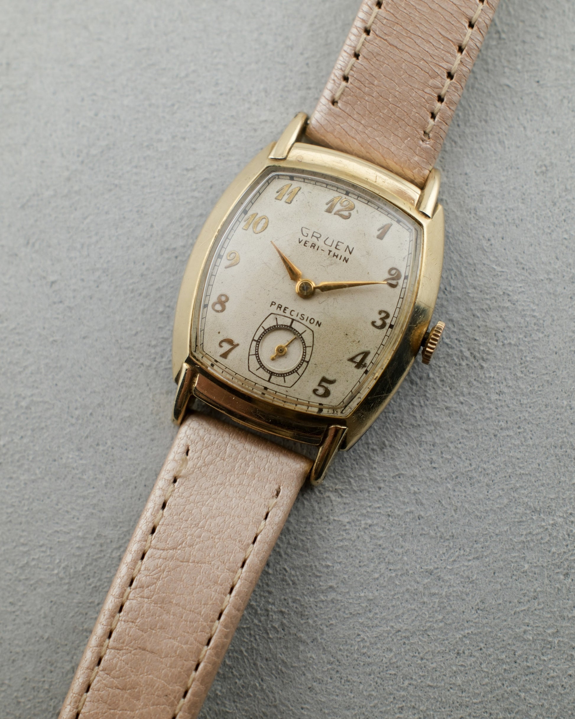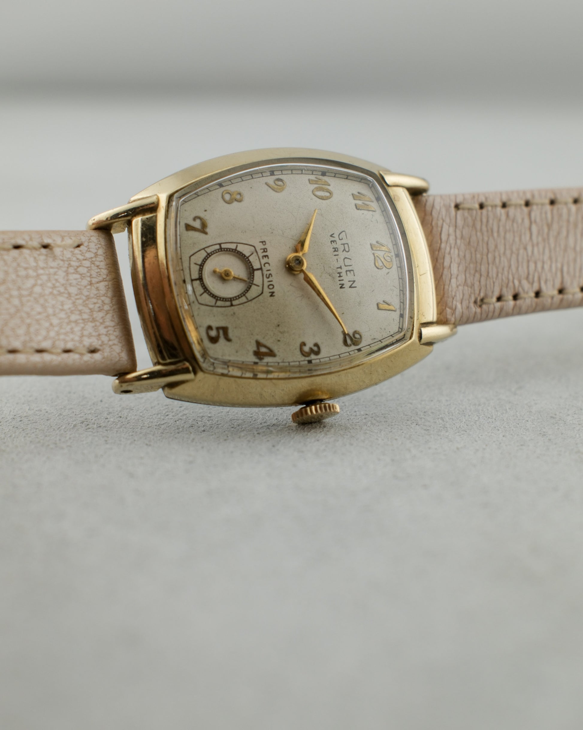 Gruen, founded in 1876, became one of the most influential American watchmakers of the early to mid-20th century. The Veri-Thin line, introduced in the early 20th century, was a major milestone for the brand, featuring movements engineered to be thinner at the sides and ends, allowing for sleeker, more streamlined cases without sacrificing durability or accuracy. By the 1940s, models like the Veri-Thin Precision were celebrated for their elegant Art Deco styling, practical sub-seconds registers, and reliable manual-wind movements, making them popular choices for both formal and everyday wear.