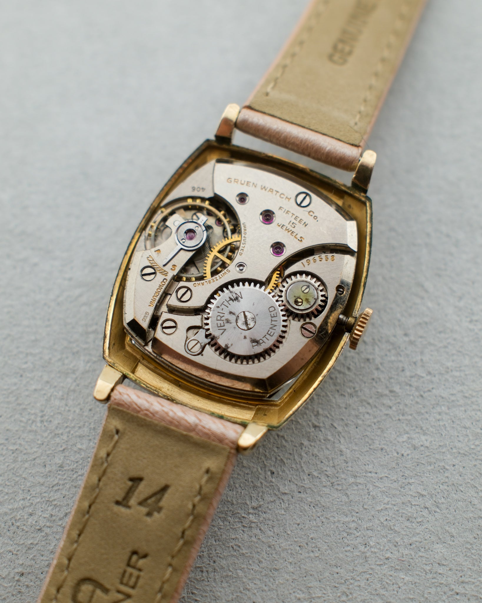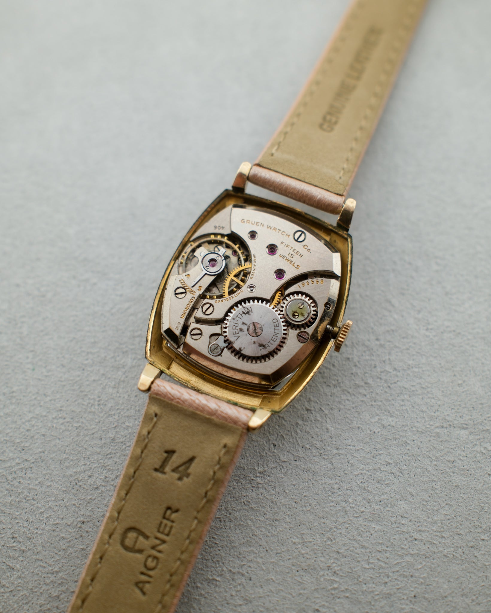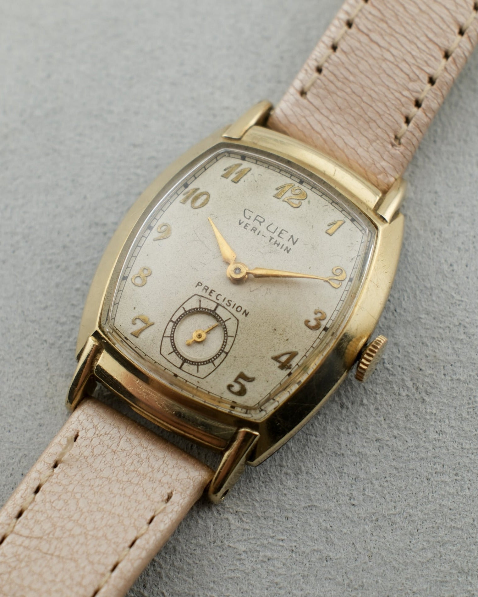 Gruen, founded in 1876, became one of the most influential American watchmakers of the early to mid-20th century. The Veri-Thin line, introduced in the early 20th century, was a major milestone for the brand, featuring movements engineered to be thinner at the sides and ends, allowing for sleeker, more streamlined cases without sacrificing durability or accuracy. By the 1940s, models like the Veri-Thin Precision were celebrated for their elegant Art Deco styling, practical sub-seconds registers, and reliable manual-wind movements, making them popular choices for both formal and everyday wear.