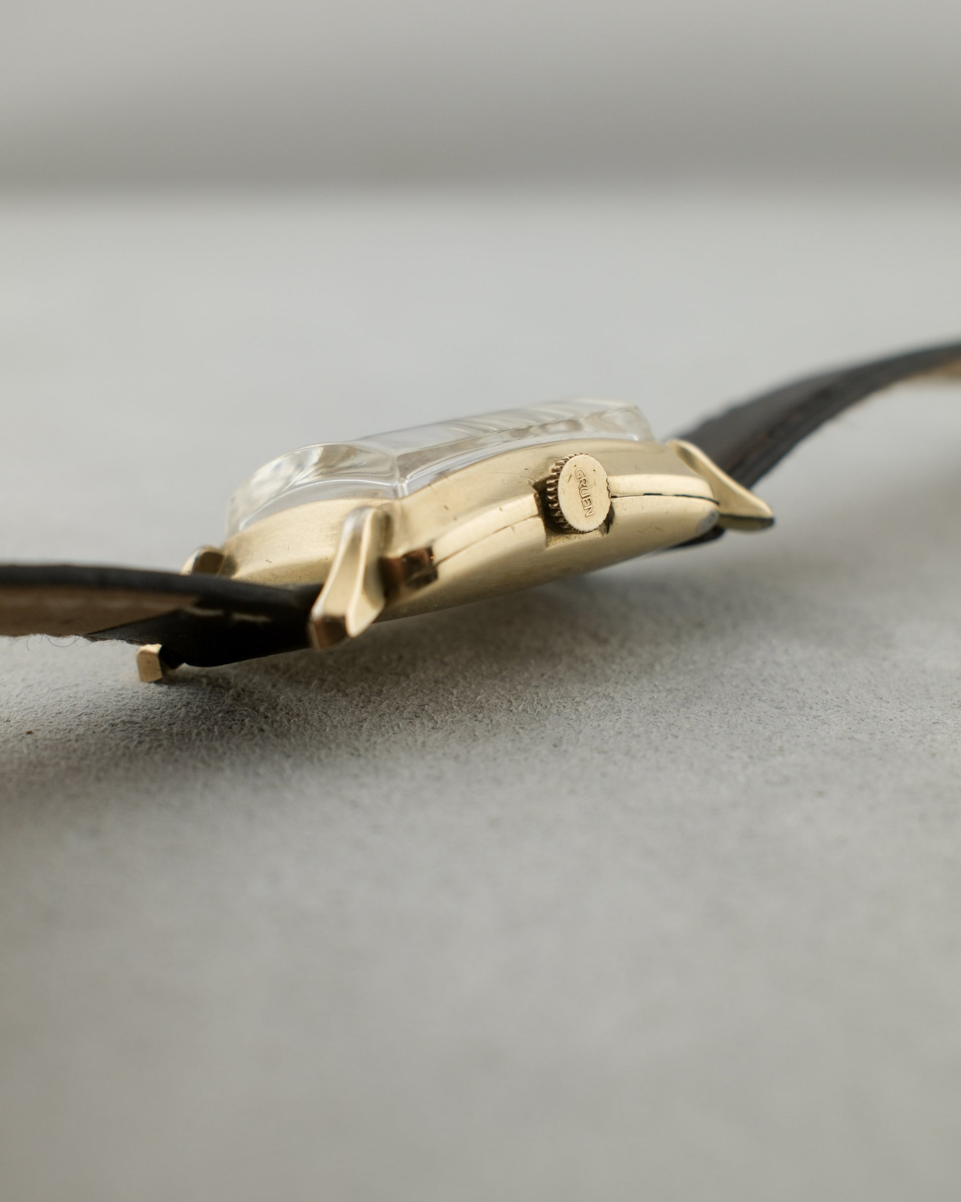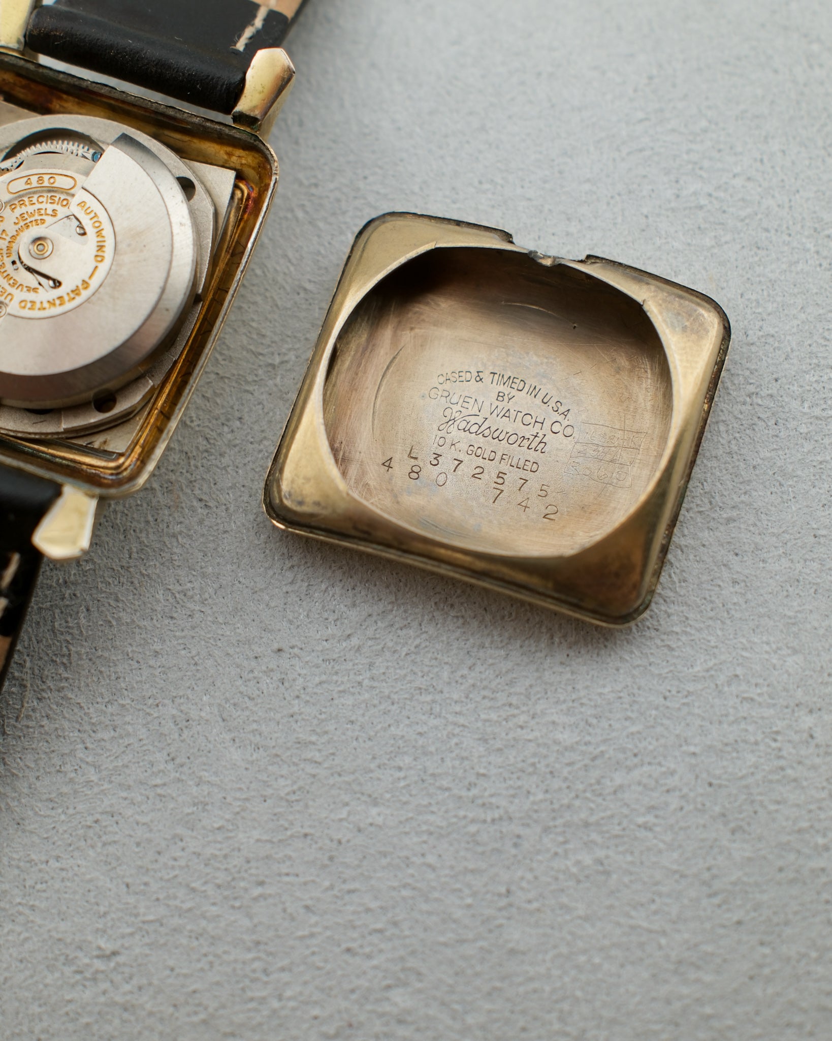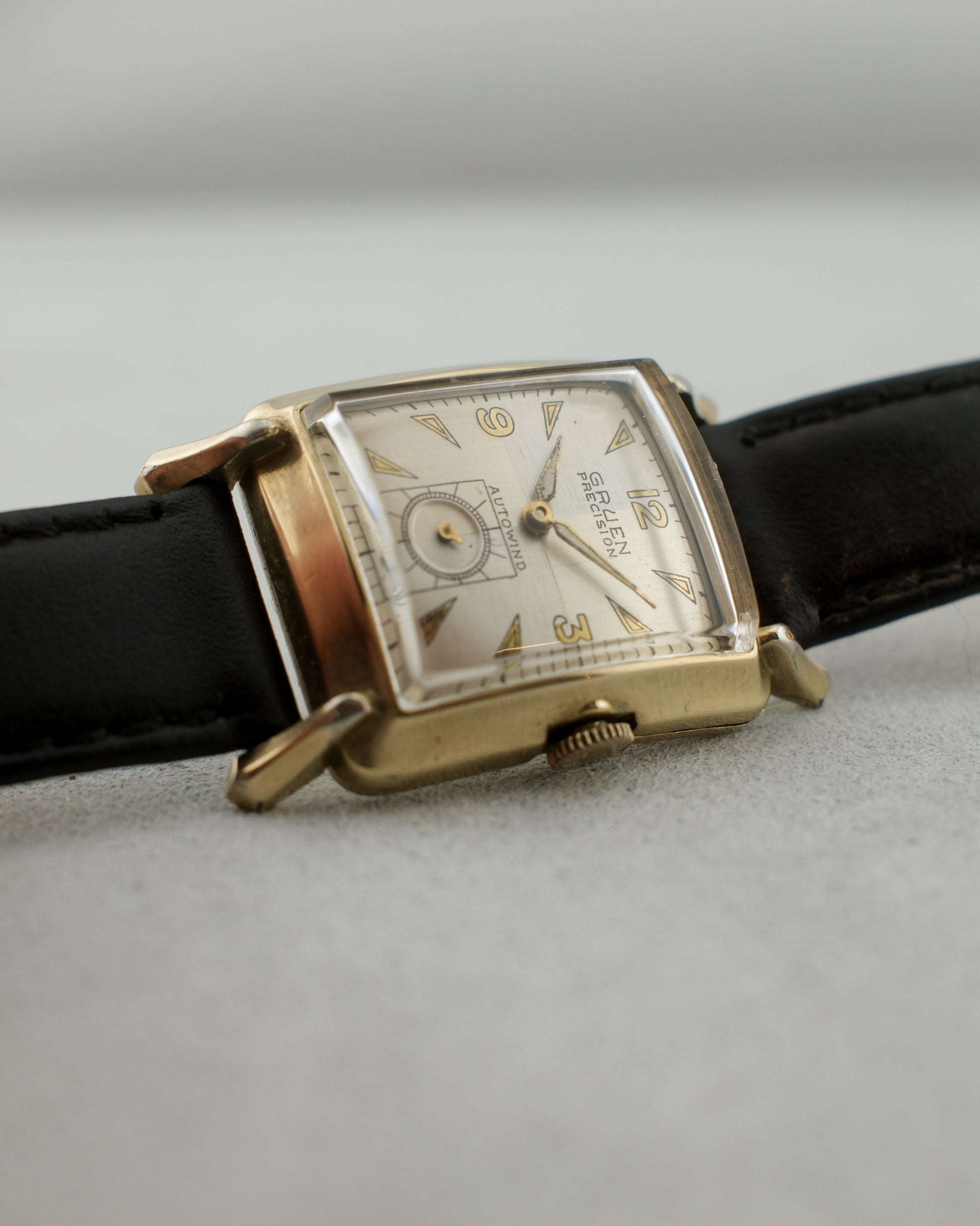 Gruen, founded in 1894 in Cincinnati, Ohio, was one of the leading American watch manufacturers in the first half of the 20th century. The brand was known for blending Swiss and American watchmaking expertise, with much of its movement production based in Switzerland and final assembly and casing often done in the United States. By the 1940s, Gruen’s catalog featured models like the Curvex, Veri-Thin, and Precision lines, which were celebrated for their stylish cases and reliable movements. The Precision series, in particular, denoted higher-grade movements and was produced in Gruen’s dedicated “Precision Factory” in Switzerland starting in the 1920s, reflecting the company’s emphasis on accuracy and quality. Gruen’s automatic watches from this era, including those with the Caliber 480, combined elegant gold-filled cases with practical features like sub-seconds registers, making them popular choices for both men and women seeking dependable and stylish timepieces.