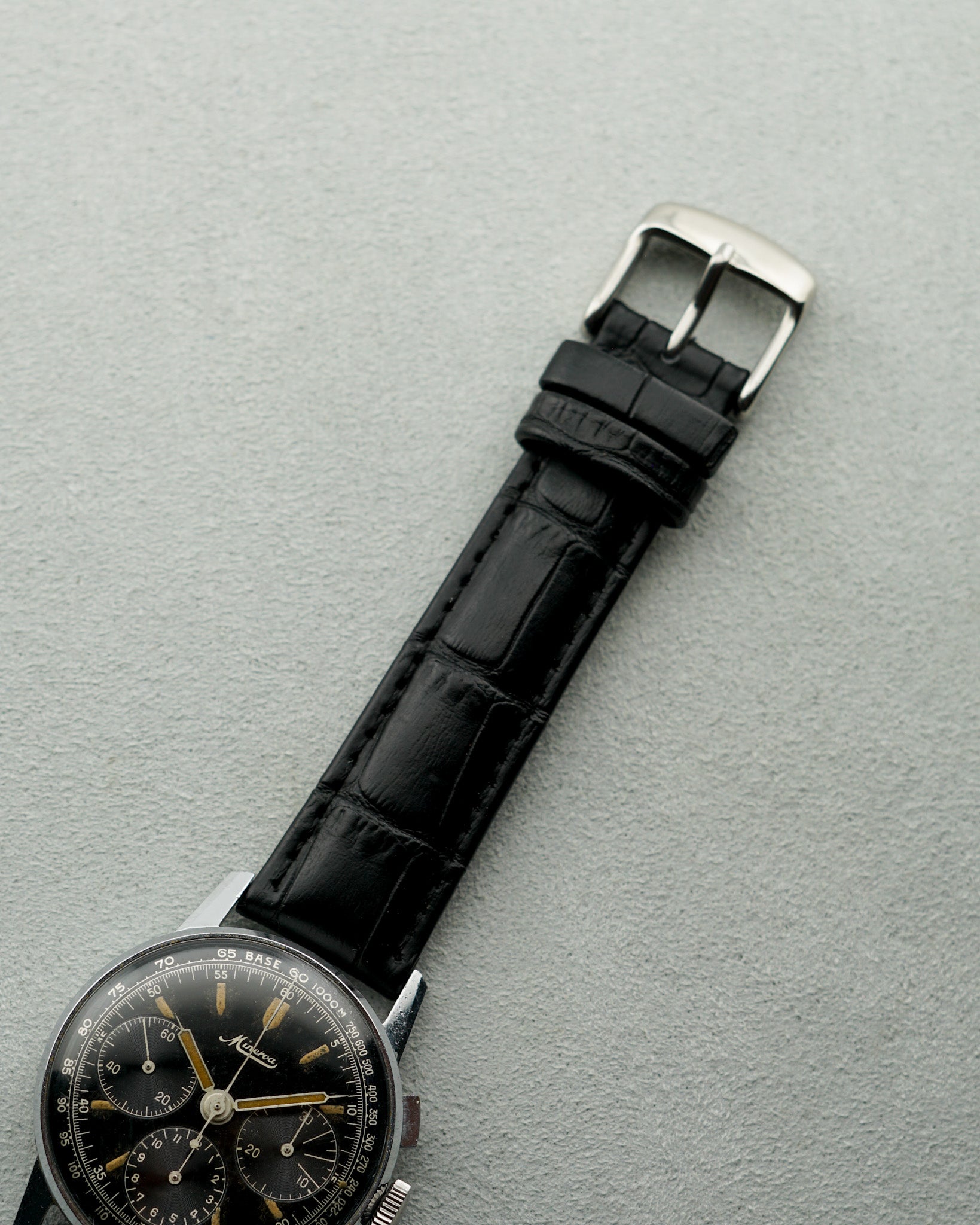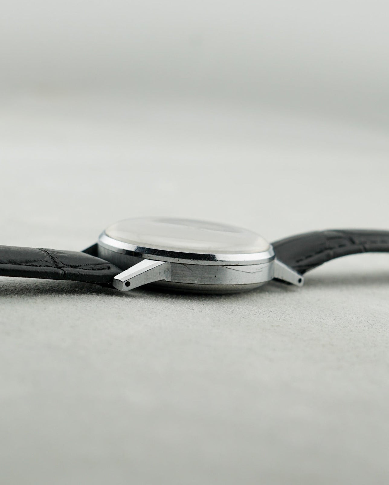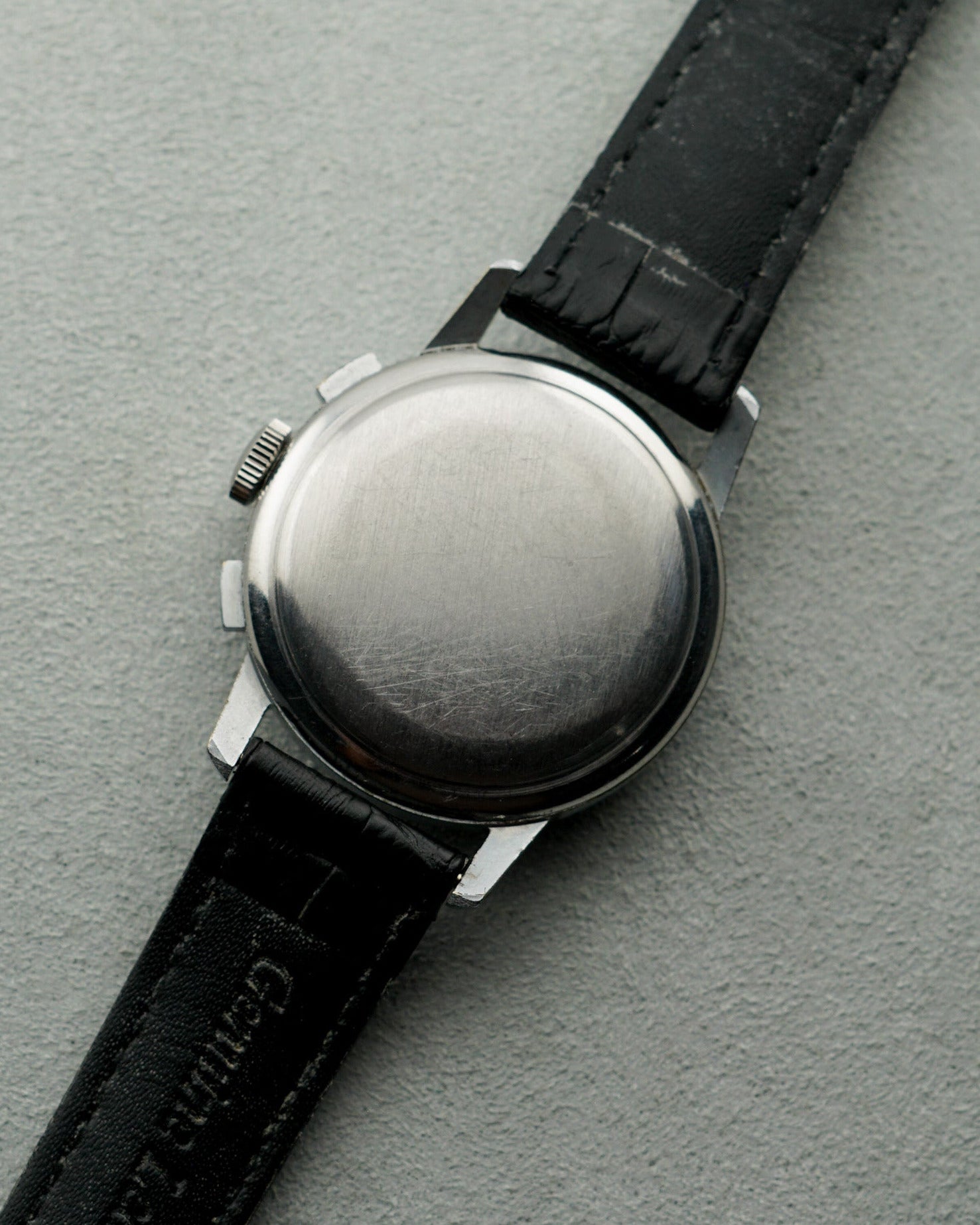 This Minerva embodies the pioneering spirit of mid-century chronographs, rooted in one of the earliest wrist-worn designs from a historic Swiss manufacture. This watch’s stark black dial, accented by a bold tachymeter scale and luminous markers, displays what close to 85 years of graceful aging can do. While Minerva’s later absorption into Montblanc signaled the end of its independence, these vintage chronographs remain essential artifacts of early chronographs.